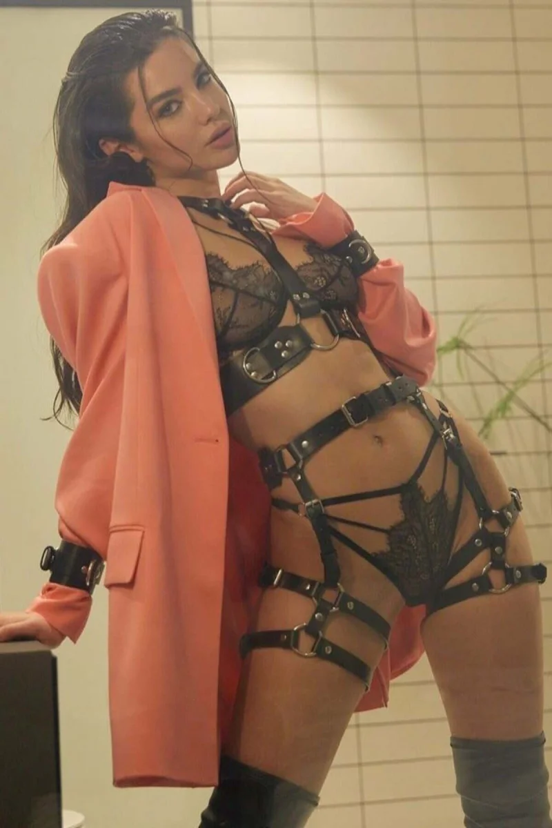 Büyük Halkalı Geniş Şeritli Fantezi Deri Harness Takım - Brf692