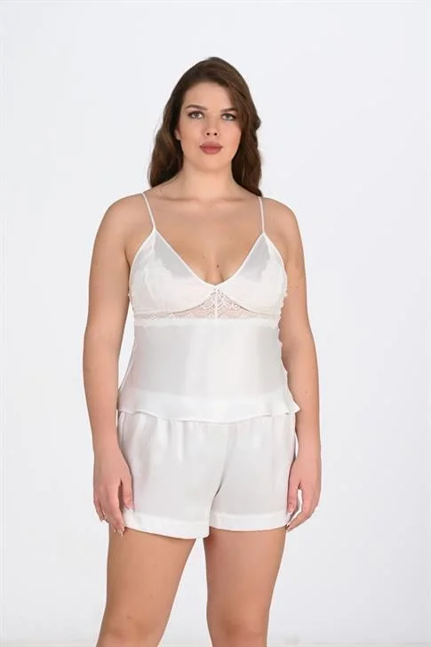 Büyük Beden Ekru Şort Takımı