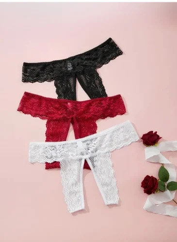 Fantezi Kadın 3'lü Özel Bölgeleri Açık Dantelli Tanga Seti