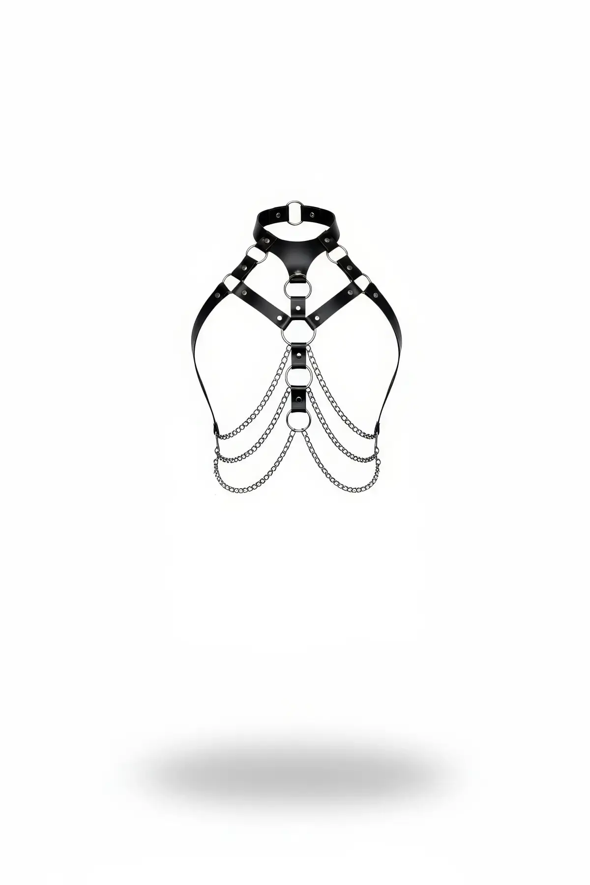 Siyah Kadın Kemer Deri Halka Detaylı Göğüs Aksesuarı - Brf1066