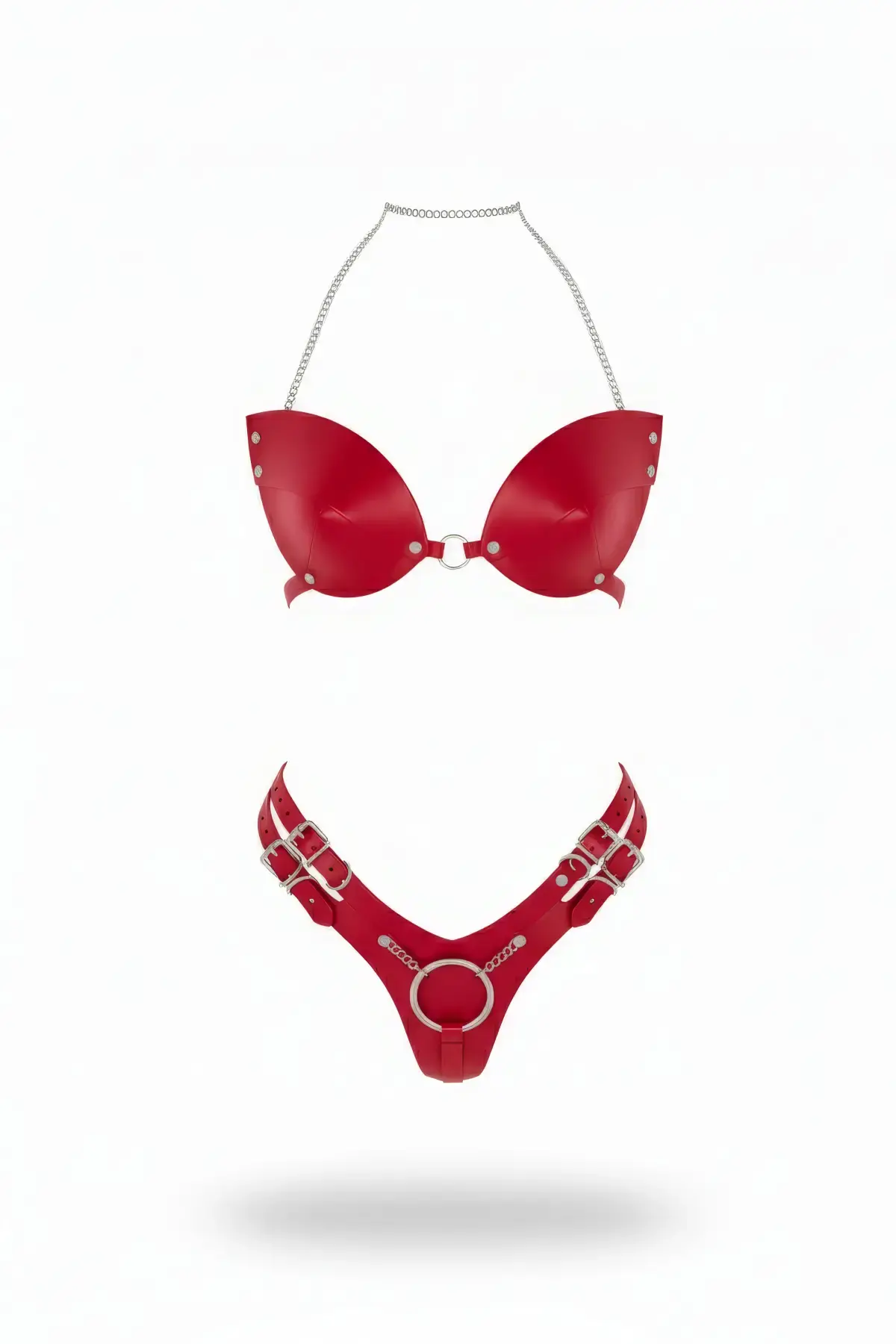𝐀𝐋𝐄𝐗𝐃𝐑 𝐅𝐀𝐒𝐇𝐈𝐎𝐍 Kırmızı Harness Takım Parlak Deri Zincir Boyun Detaylı - Brf1223